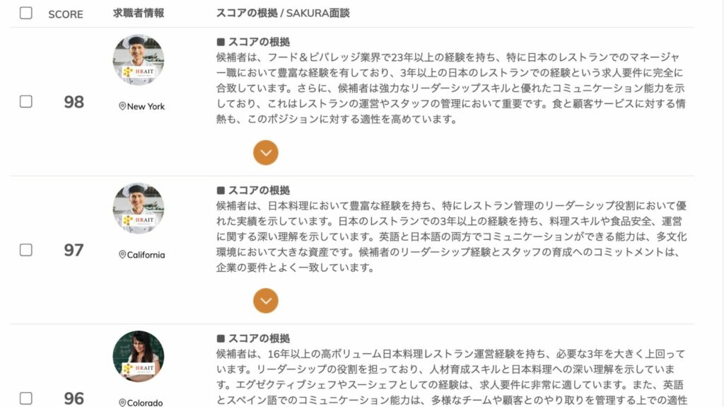使い方はシンプルで、まず求人票をアップロードするだけで、自社に合う候補者が自動でスコーリングされます。候補者一人ひとりをゼロから確認しなくても、マッチ度の高い人材から優先的に見ていけるため、採用担当者の負担は大きく軽減されます。