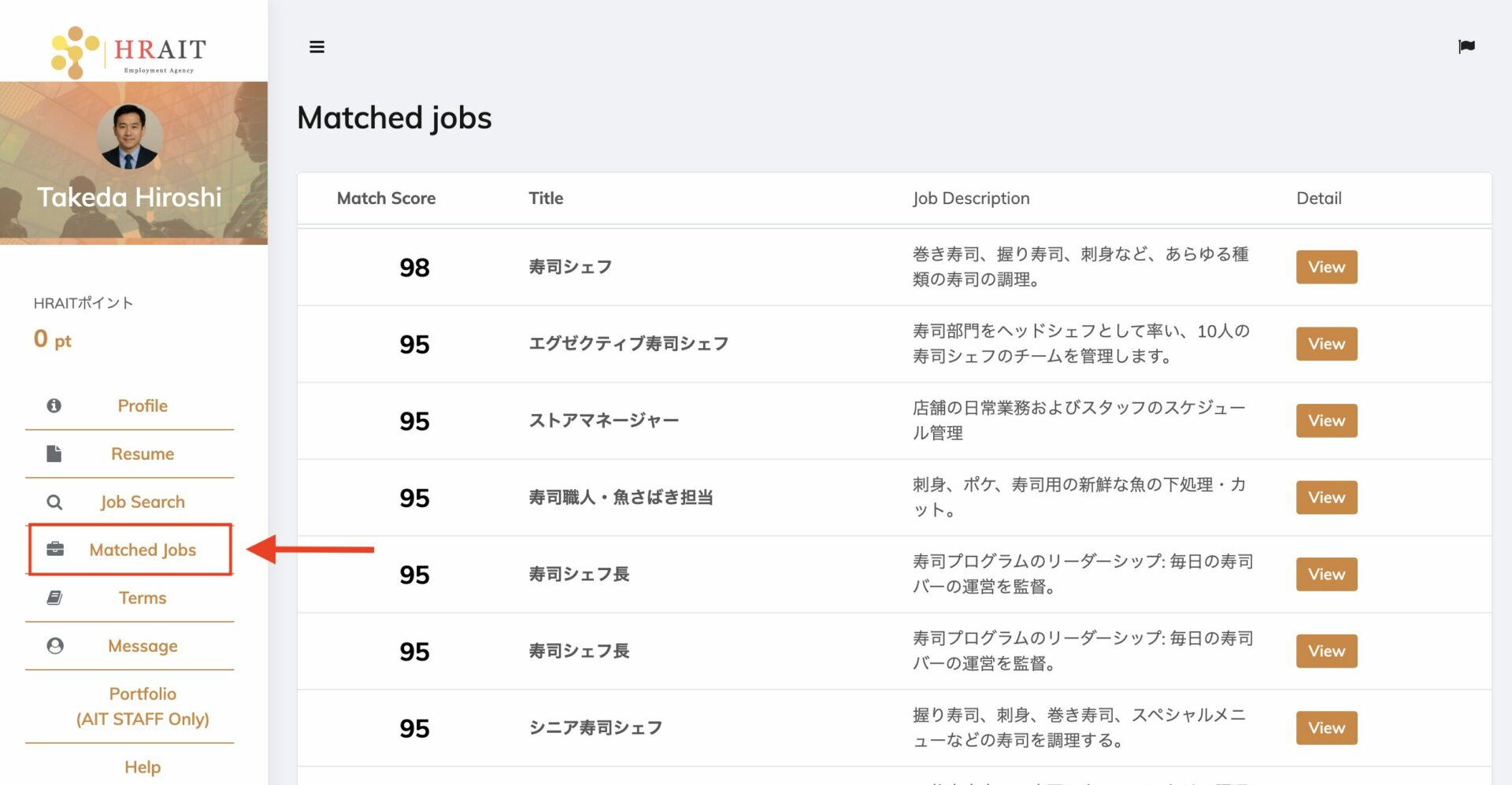 ② マッチした求人を確認する